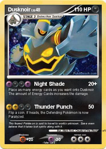 Place as many energy cards as you want onto Dusknoir. The amount of Energy Cards increases the damage.